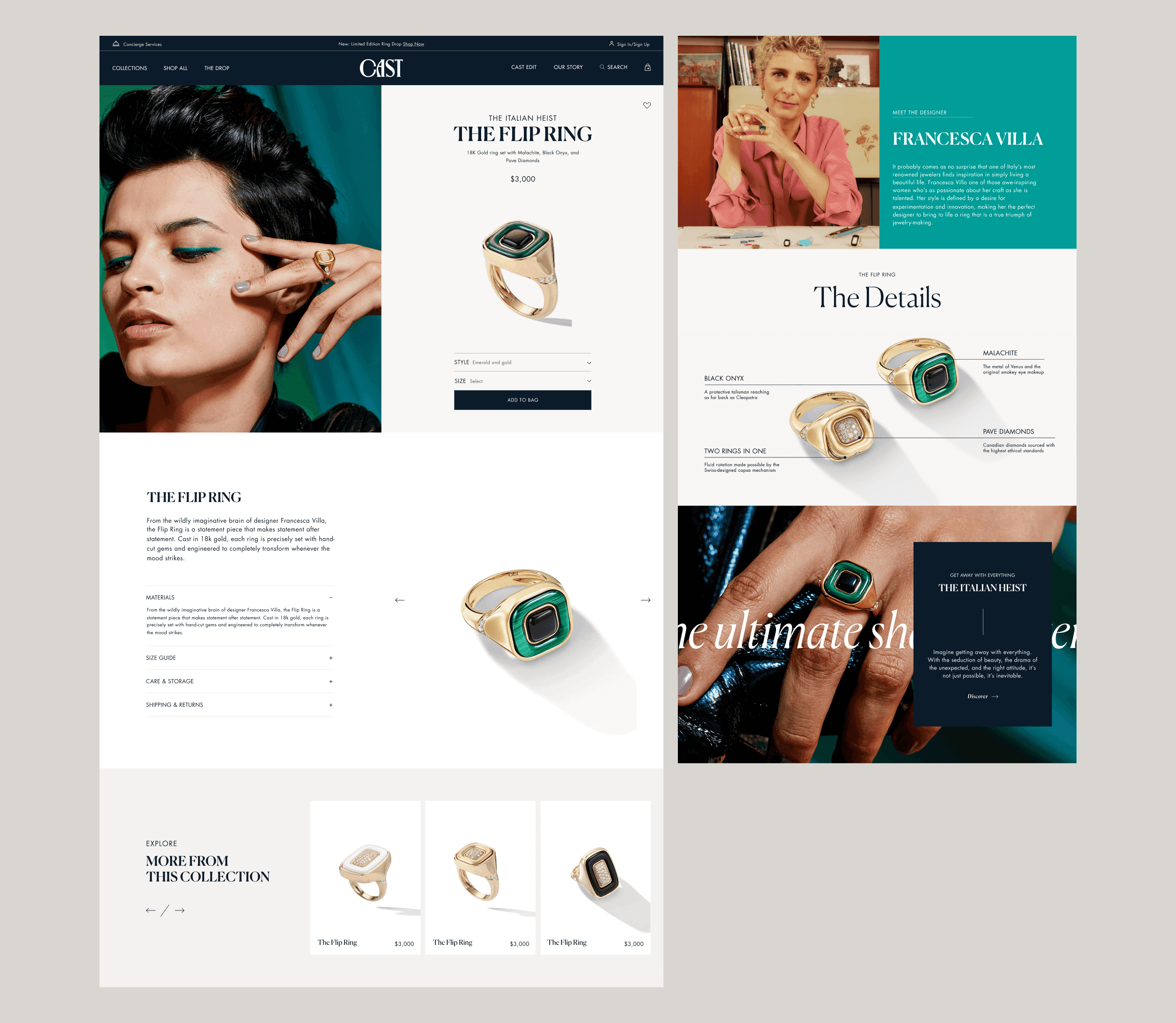 Cast launched its first DTC experience with a clear goal: create an e-commerce site that felt as elevated and electric as the jewelry itself. Beyond showcasing the pieces, the brand needed a platform that honored craftsmanship, ethical production, and the designers whose stories bring each collection to life.