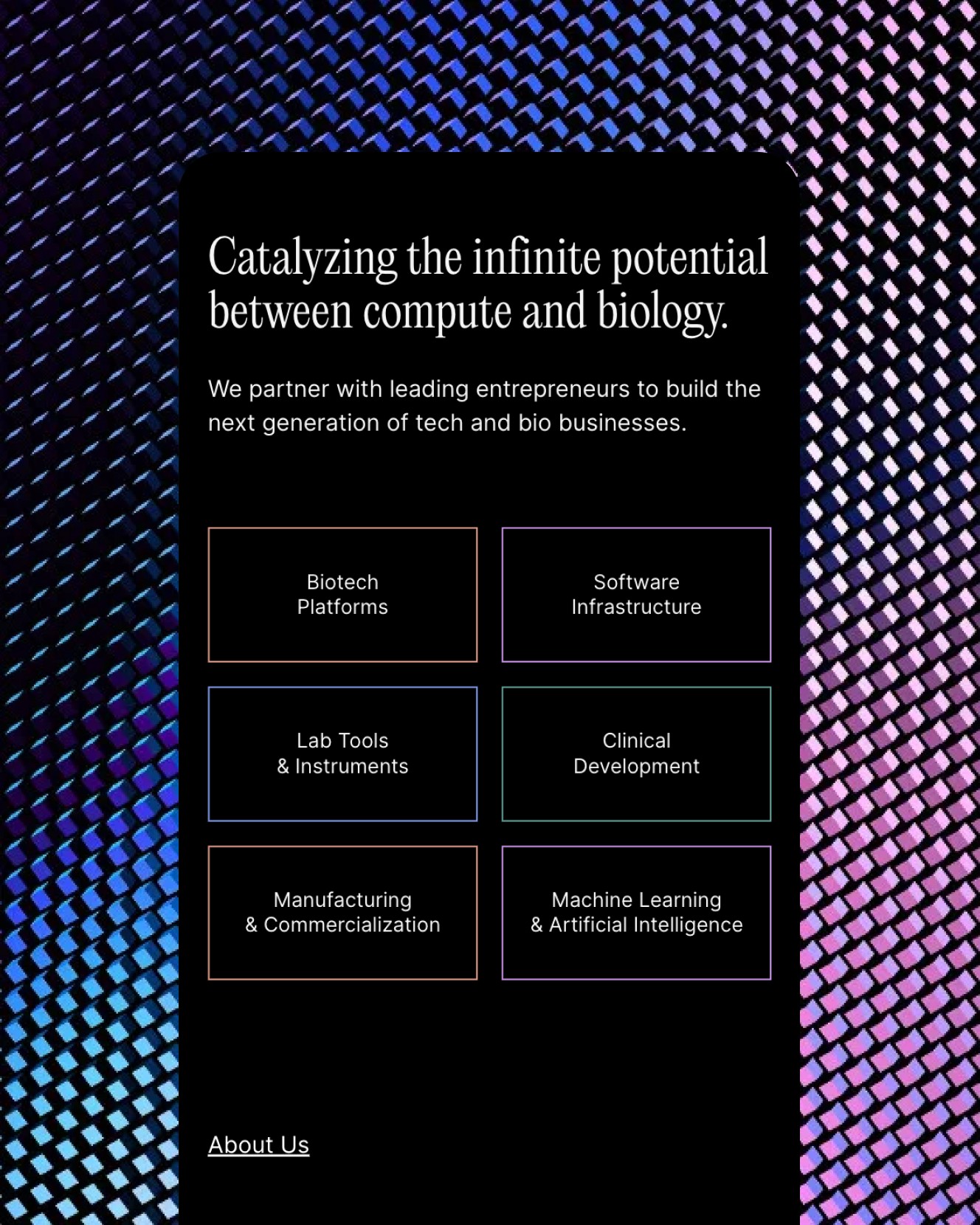 Dimension launched as a new kind of investment firm—one built on long-term partnerships with founders working to transform the trajectory of life on earth. The opportunity was to create a brand and digital presence that conveyed ambition, credibility, and a sense of wonder equal to the firm’s mission.
