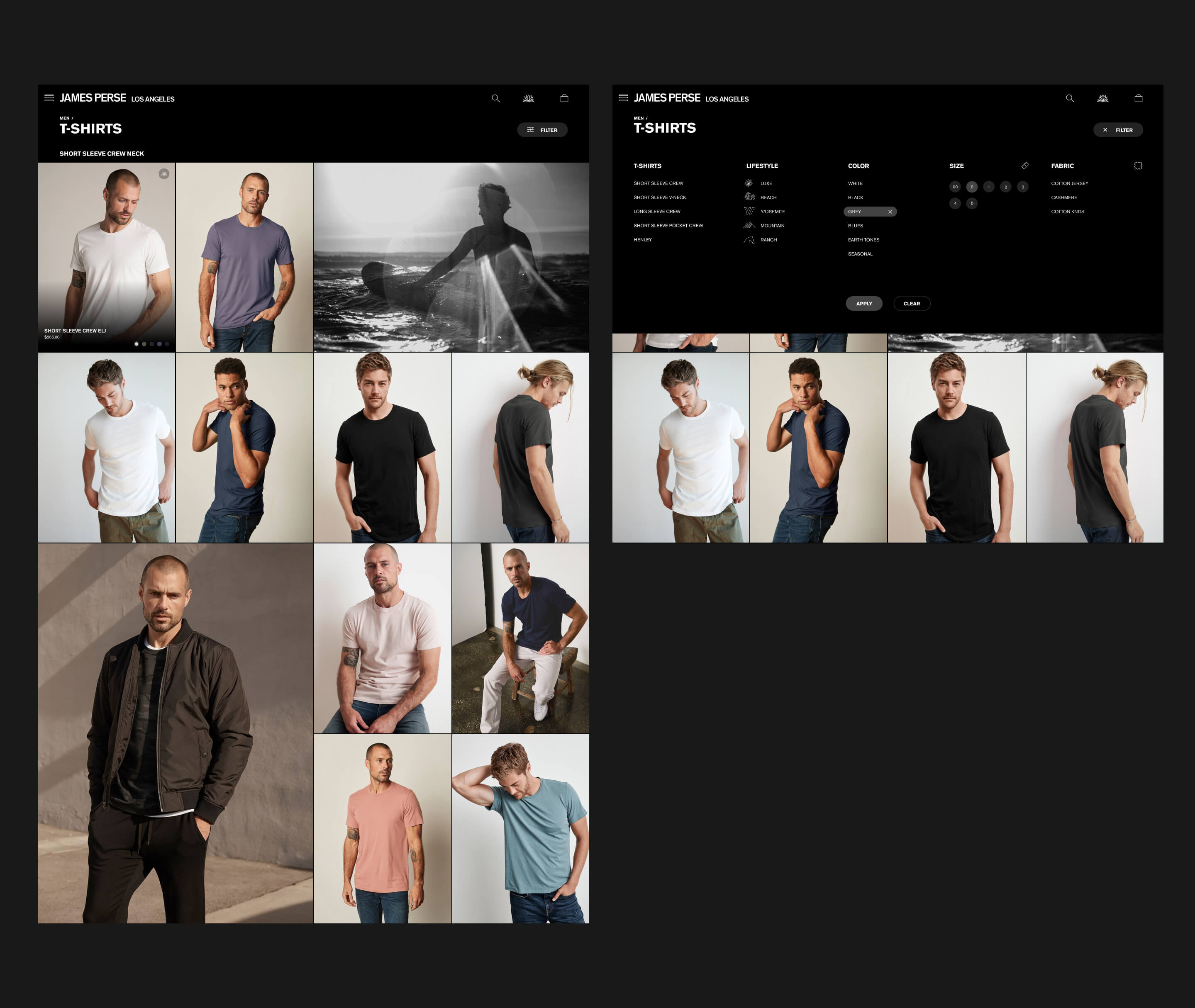 The redesigned site pairs full-bleed imagery and app-like interactions with thoughtful UX solutions rooted in customer behavior. Custom bundling simplifies multi-item purchases, while fabric and sizing details are surfaced to reinforce craftsmanship and quality. Personalized account features, immersive storytelling modules, and distinct visual treatments for each brand pillar come together to create a refined experience that feels effortless, considered, and distinctly James Perse.